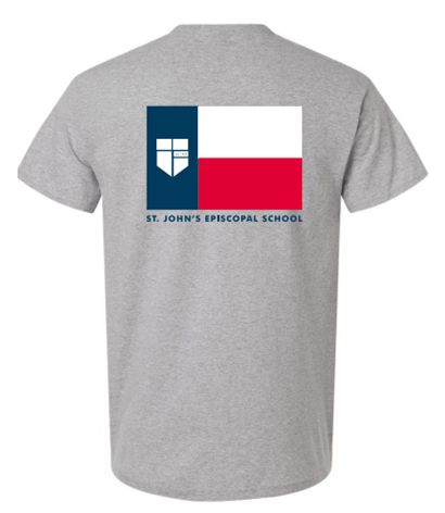 Show your love for Texas AND St. John's with this awesome shirt! Gildan 5.3oz cotton shirt in Sport Grey.*This shirt is great for all St. John's events and Spirit Fridays, but is not uniform approved.